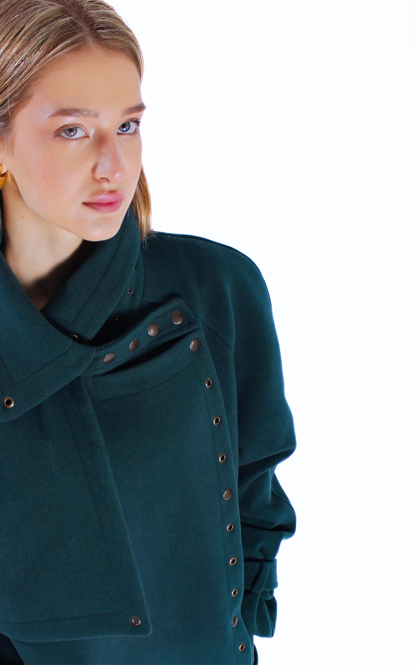 - high adjustable collar with snap buttons