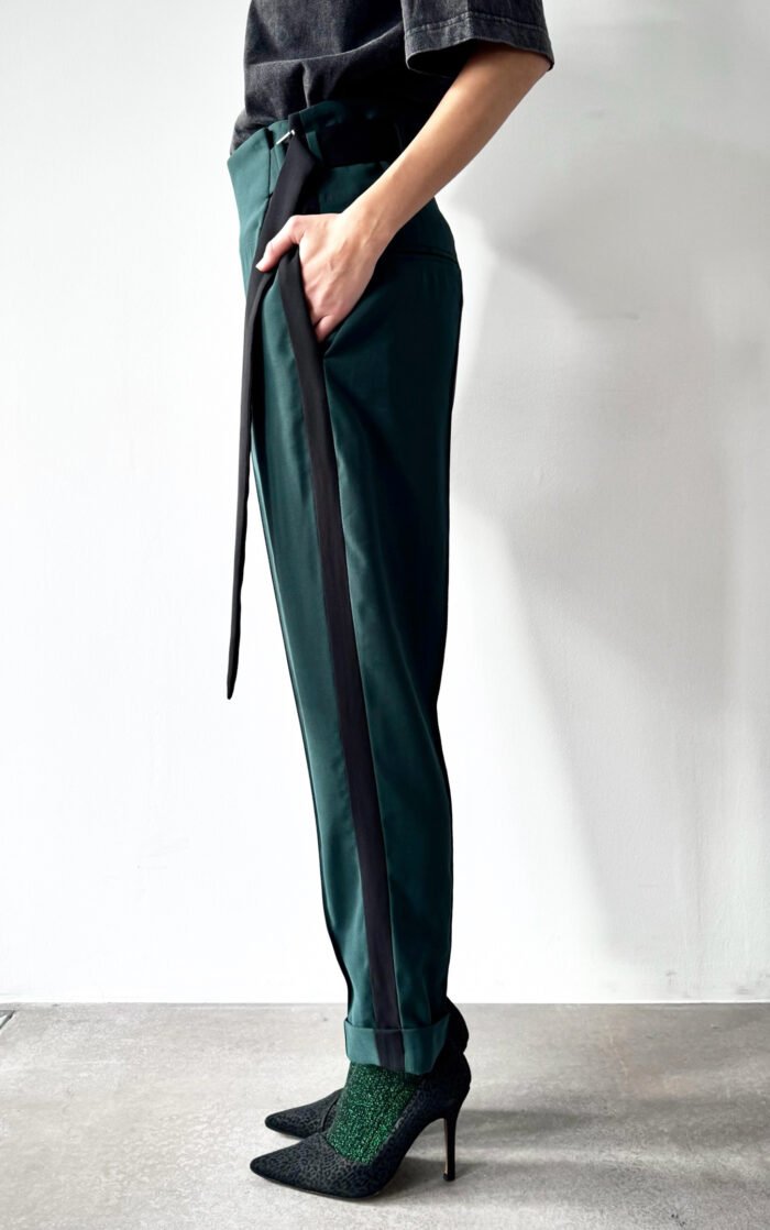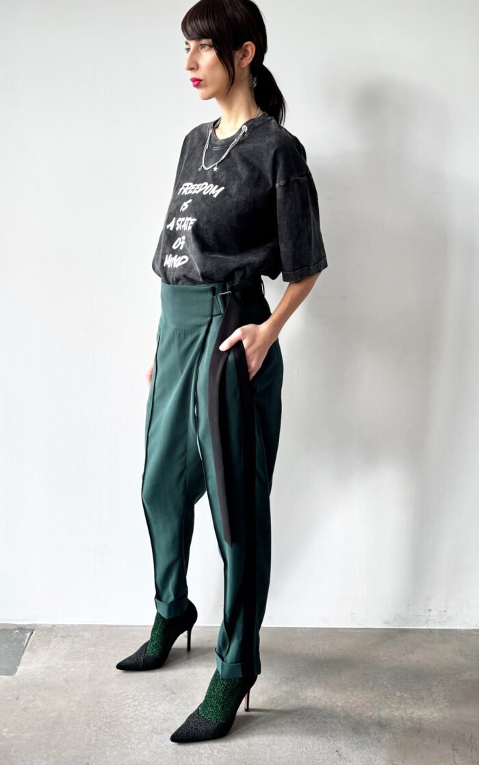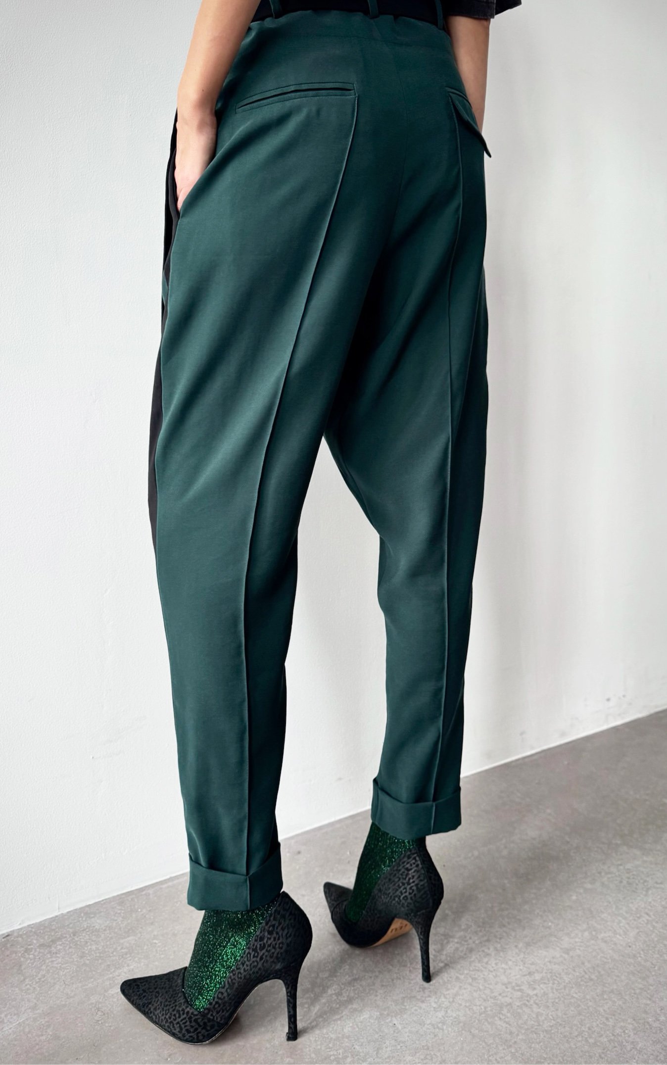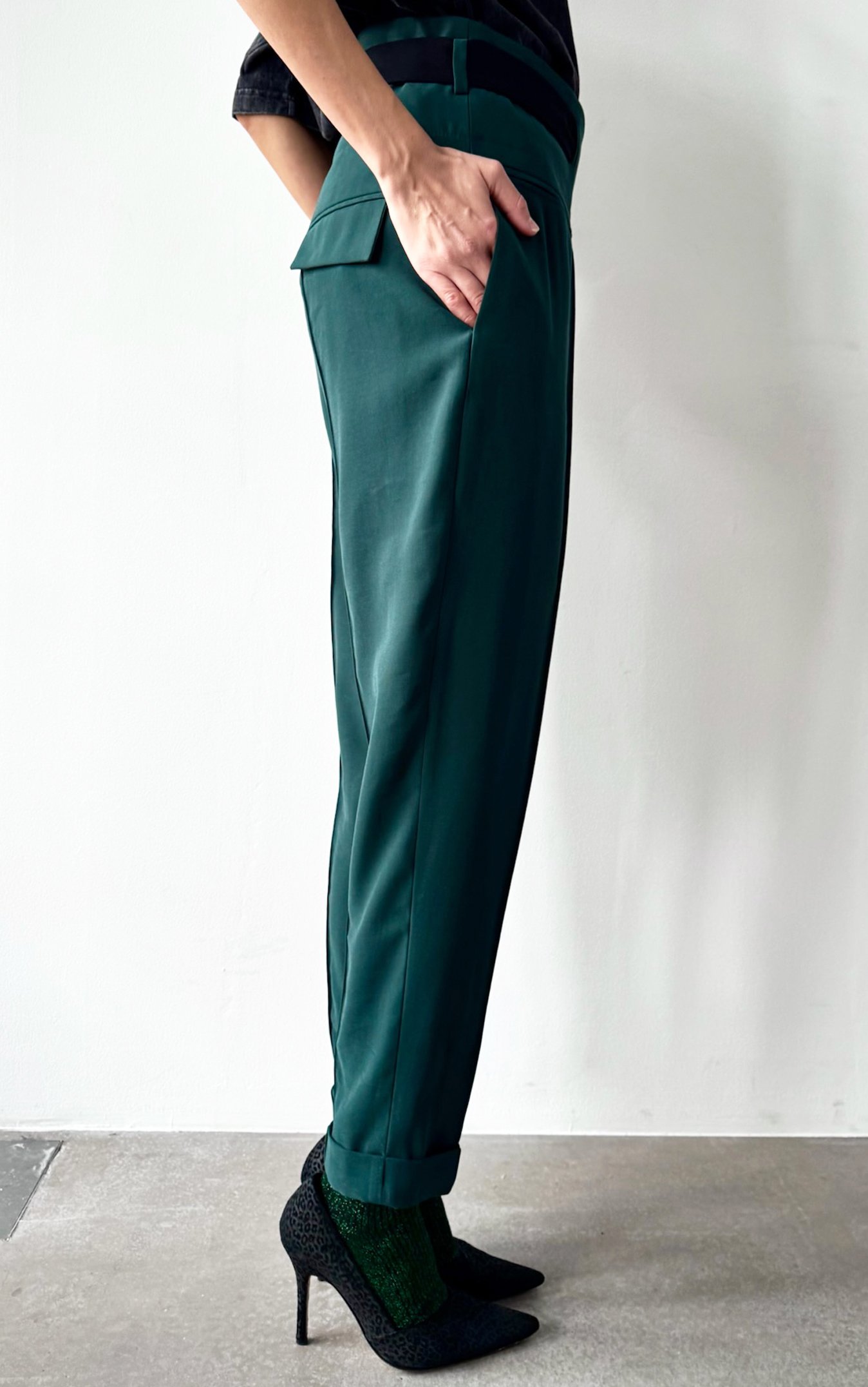 • tamno zelena pantalone srednje dubine i užih nogavica